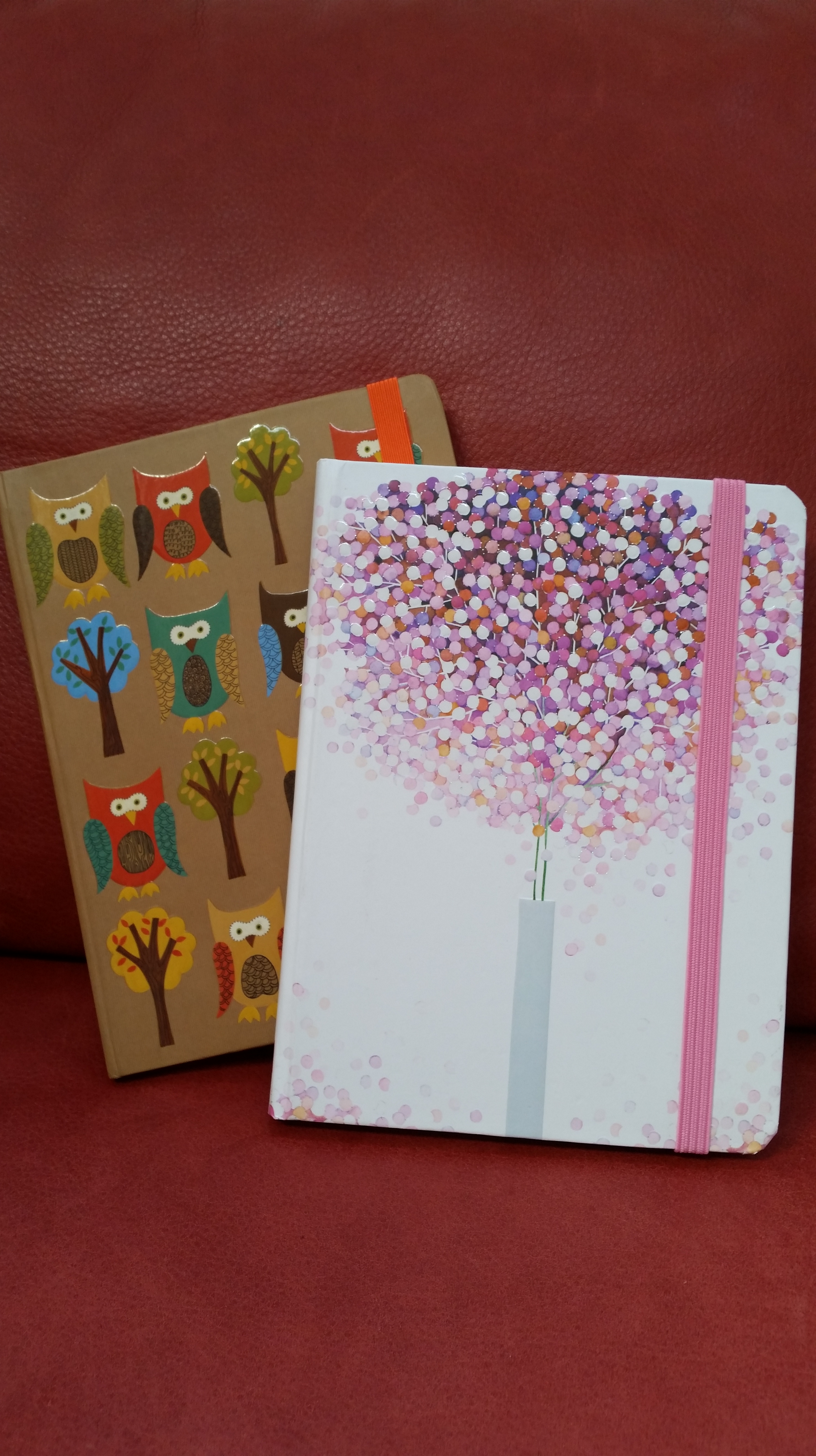 Pewnego dnia trafiliśmy z Mężem na urząd pocztowy, w którym nigdy wcześniej nie byliśmy. W Holandii nie ma poczty na każdym kroku i naprawdę trzeba się nachodzić, by coś znaleźć albo po prostu dobrze uprzednio przeszukać Internet :). Byliśmy akurat w centrum, a właśnie miałam wysłać drobiazgi dla dzieci przyjaciółki w Polsce. Ten punkt był najbliżej. Kiedy tam weszliśmy od razu zanurkowałam w półkach z notesami. Piękne i dostojne przyciągnęły natychmiast moją uwagę. Nie mogłam wyjść bez nich. Ten z sowami wybrałam dla Męża, ten drugi dla mnie. Mogę się nazwać kolekcjonerką notesów, bo z każdego miejsca, gdzie one się znajdują przynoszę jakieś do domu. Stoi ich już wiele na półkach. Gdy przychodzi na nie kolej, służą do zapisków różnego rodzaju. O ich przeznaczeniu decyduję spontanicznie w momencie, gdy właśnie potrzebny mi notes :).